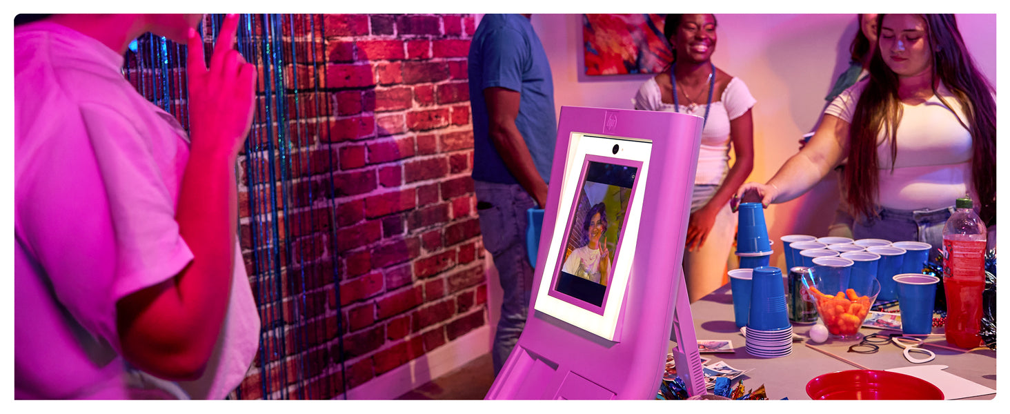 Einfach zu installieren, benutzerfreundlich und kompatibel mit der speziellen App (je nach Modell) – dieser kompakte Fotomat wird schnell zum Star Ihrer Veranstaltungen. Sein modernes Design fügt sich perfekt in Ihre Dekoration ein und dank seines tragbaren Formats können Sie ihn überallhin mitnehmen.
